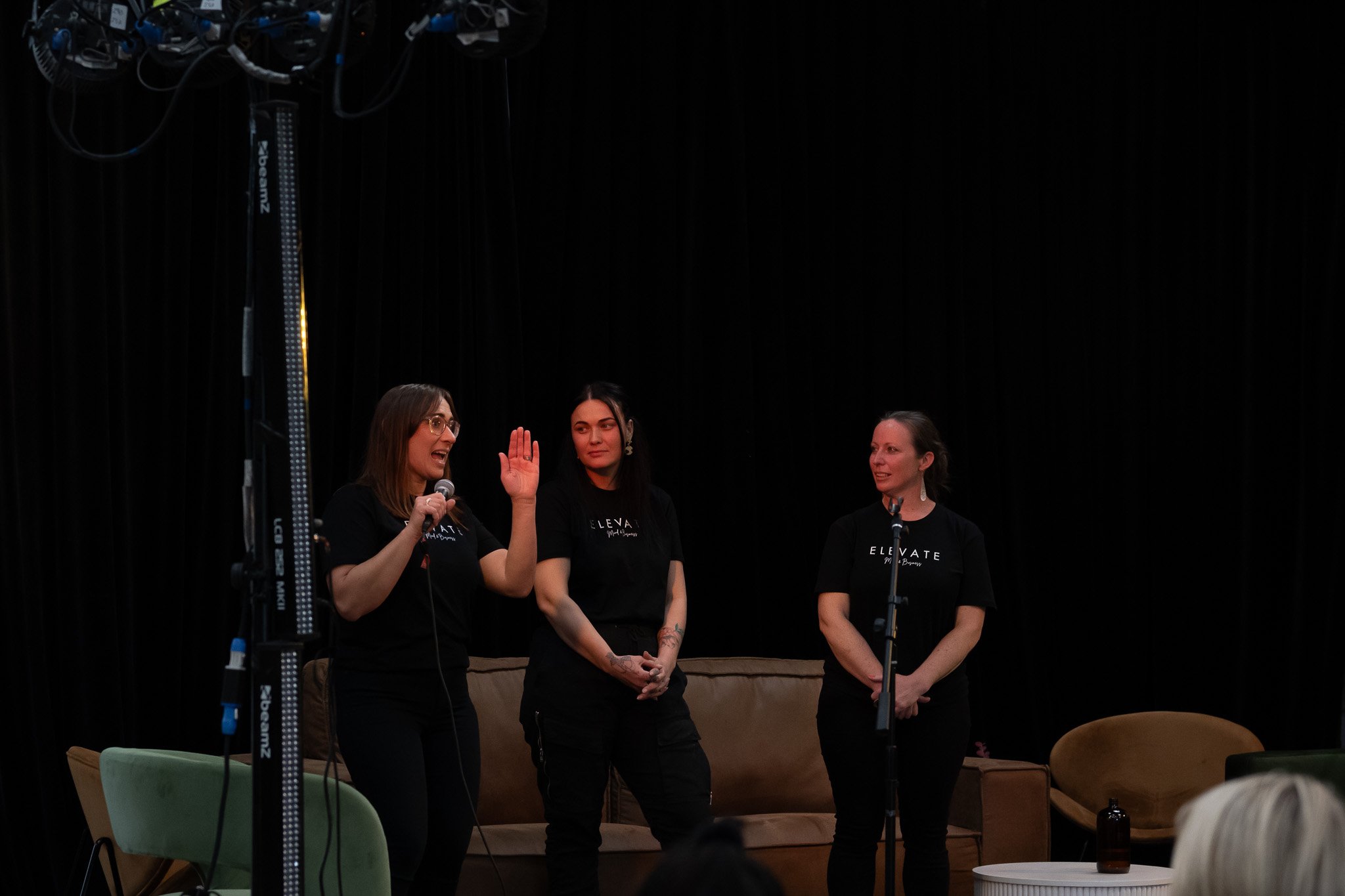 As well as creating a space for our ticket holders to connect our goal was also to start a conversation. To create a space where women could openly talk about all the highs and lows of being a womanand juggling the life/family/work balance we know all too well. So we invited a group of local business women, from all walks of life, all at various stages of their journey, to join us on stage in a casual couch conversation. Our group of panelists included Sarah Ramsay (United Machinists), Haley Van Leeuwan (Craigs Investment Partners), Nicol Whareaitu (The Standard Kitchen), Ilse Erasmus (Elemental Integrative Wellness, The Longhouse) and Elizabeth Zizik (Hekate). The women spoke so openly, and shared their experiences on being a woman in a mans world, mental health, neurodiversity, juggling parenthood, wellness, burnout and how to pick yourself up again after failure. This conversation was then followed by a workshop from Sonya O’Neill (Otago Highlanders Personal Developement, Well + Being) that really helped us dive into mindset before bringing us all together for the most beaufiful “pub choir” rendition of Country Roads.